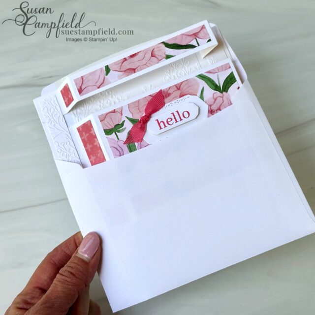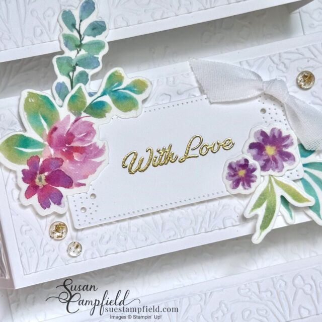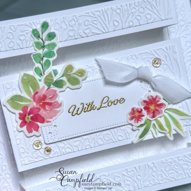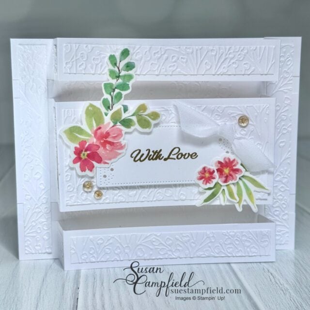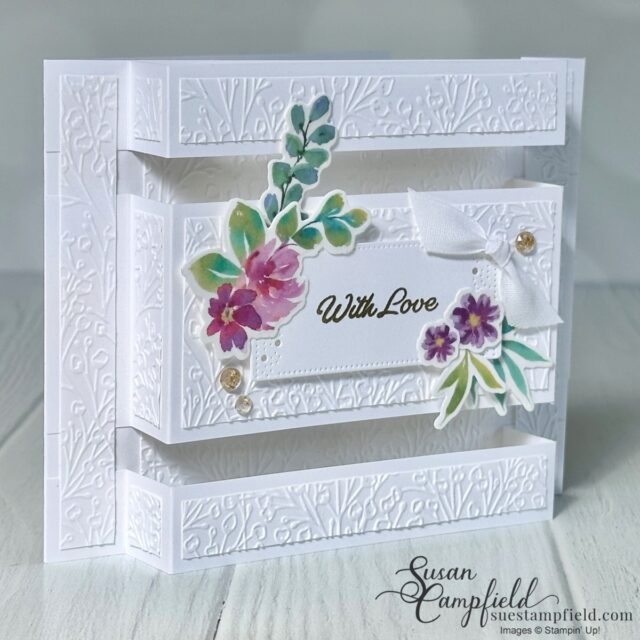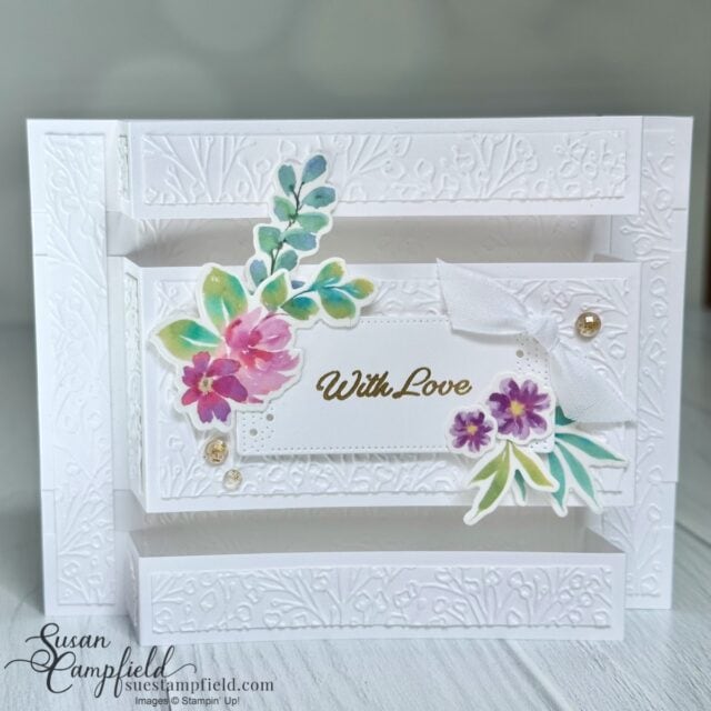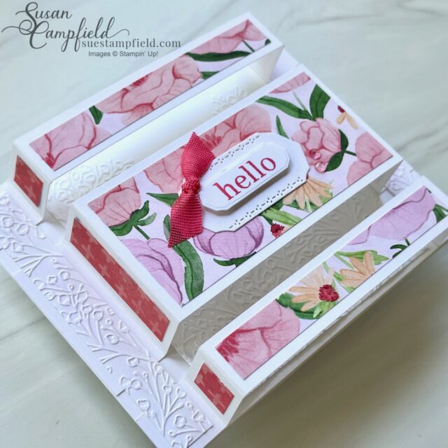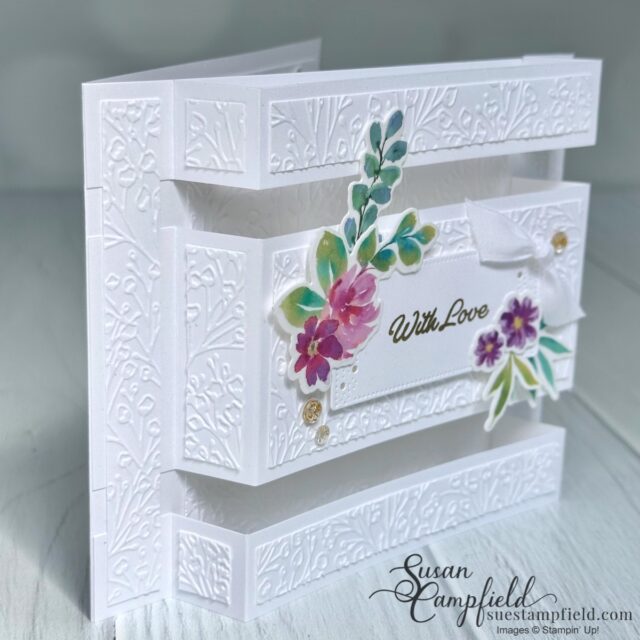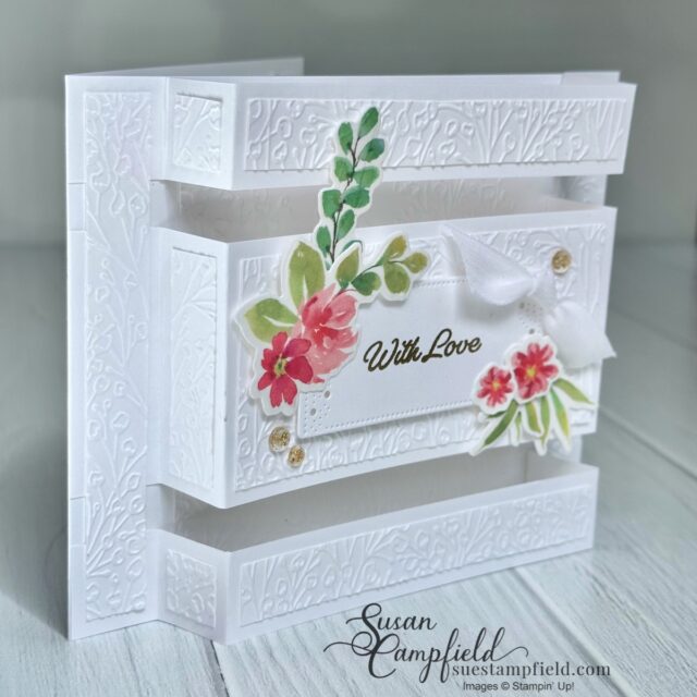 The background is embossed with the Pressed Flowers embossing folder to add texture without distracting from the pop-up design.