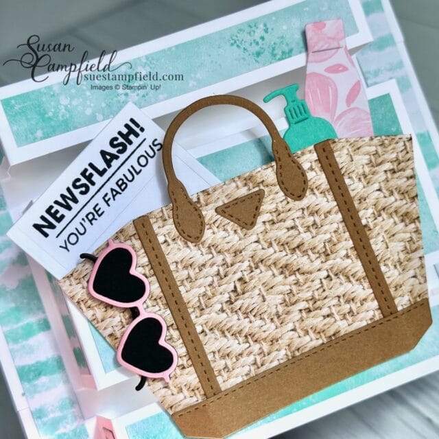 Demonstrator Patti Brunter shared a Notes & Totes card that used the Woven Textures Designer Series Paper and it inspired the tote portion of this card – thank you Patti!