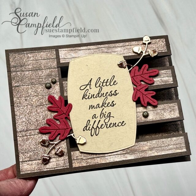 On the back, I decided to add another set of the Cherry Cobbler oak leaves and another stem of the copper acorns!