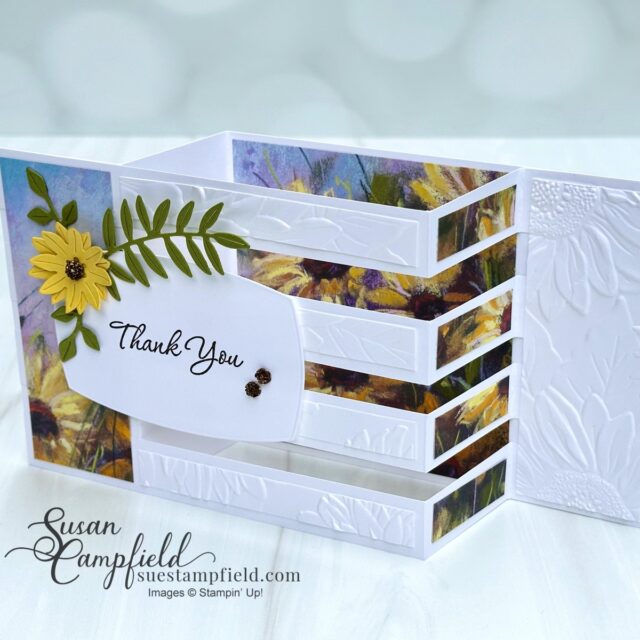 Thank you for letting me share this creative fun fold with you! I would love to send you a packet for next month’s Suestampfield Crafternoon Creative Escape. If you live in the United States, to qualify for a packet and tutorial, simply place a $50 order of Stampin’ Up! product (after rewards credits and before tax and shipping) in my online Stampin’ Up! store HERE. No host code required. Happy creating!