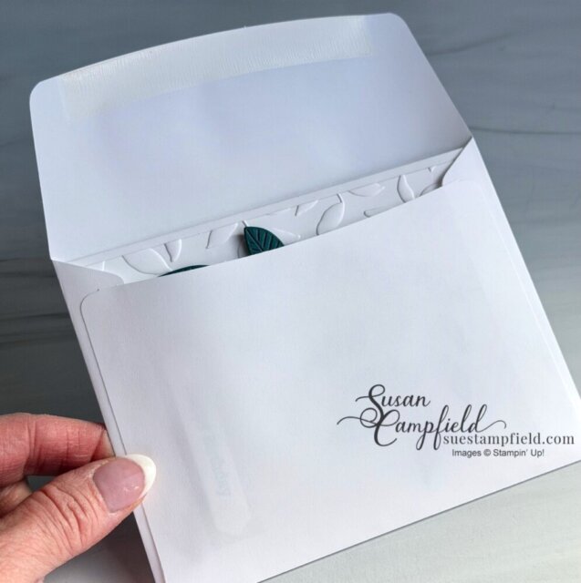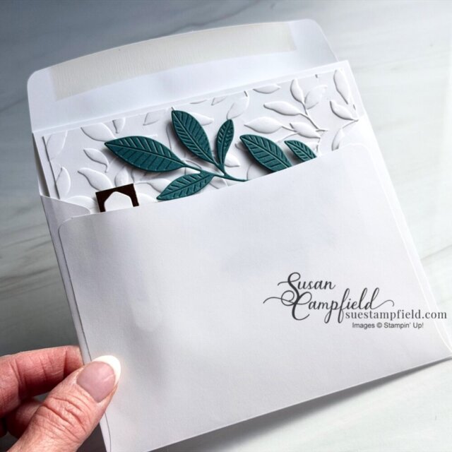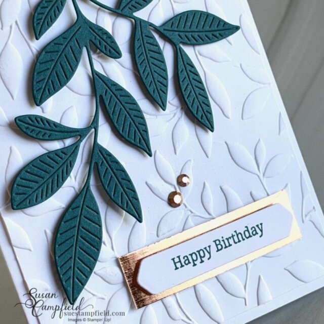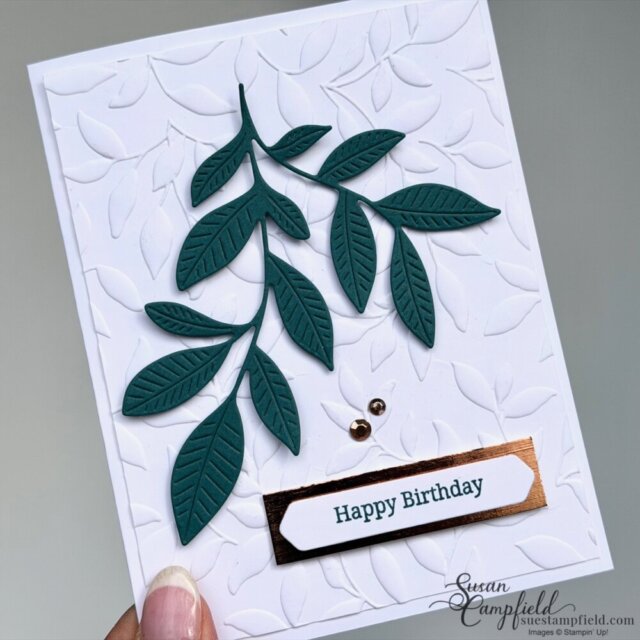 The large leaf die from the Nature’s Symphony dies is a stunner—it makes it easy to create an elegant card you’ll want to use again and again.
