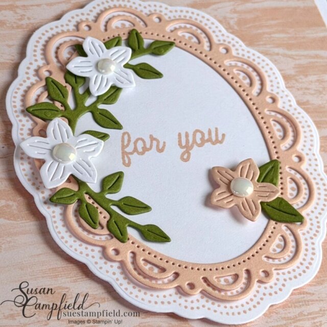 In this close up you can really see the amazing detail of the Forever Florals overlay die – lovely!