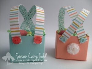 Another fun idea to dress up your Easter table! These little bunny britches treat boxes are fast and easy – and fun! Perfect to fill with treats or a colored Easter egg. See below for the box pattern and list of supplies. Details on the "tail" at the back of the box. I used the …