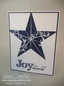 Yet another fun card with the Christmas Collectibles stamp set and matching punch from the Holiday Catalog! This one uses the beautiful 1" Stitched Edge Cherry Cobbler ribbon as a beautiful accent. The Season of Style paper stack adds just the right pop of color. We used the Hexagon Punch to make the banner flags …